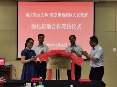 -南京市栖霞区人民政府深化校地合作签约仪式在江苏省栖霞现代农业产业园管委会举行。我校校长陈发棣,栖霞区人民政府区长王生出席仪式。仪式由栖霞区副区长田峥嵘主持。