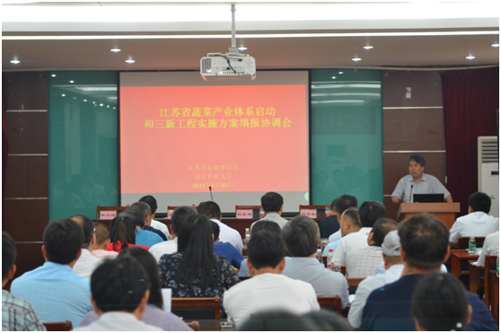 6月25日,江苏省蔬菜产业体系启动和三新工程实施方案填报协调会在我校召开。江苏省农业委员会科教处处长姜雪忠、项目主管毕冬梅、我校科学研究院石学彬以及蔬菜产业体系岗位专家和示范基地主任共80余人参加了会议。江苏省蔬菜产业体系首席专家侯喜林教授主持会议。
