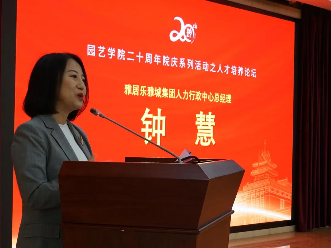 一道,探索校企合作的新模式、寻求人才培养的新方式。她希望能把一些有趣的实践和职业发展课程带到南农,链接校园和社会,让学生能够赢在起跑线,接纳并热爱自己的事业,并向南农学子发出邀请,期待他们加入雅居乐雅城集团,和公司一同成长,为母校增光添彩。