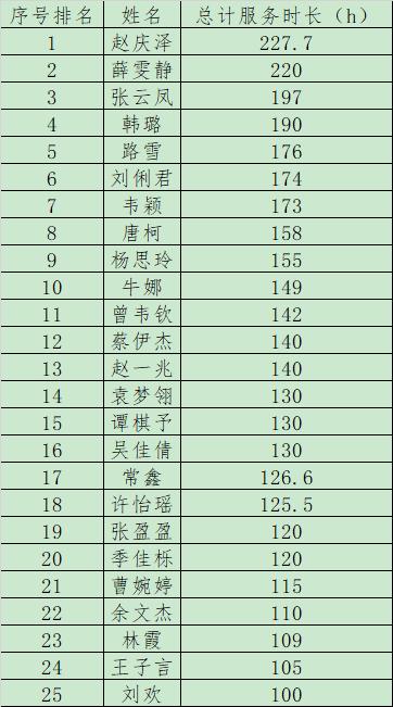 经个人申请,学院审核,以本年度志愿服务总时长为主要依据,拟推荐赵庆泽等25名同学申请草榴社区 优秀志愿者: