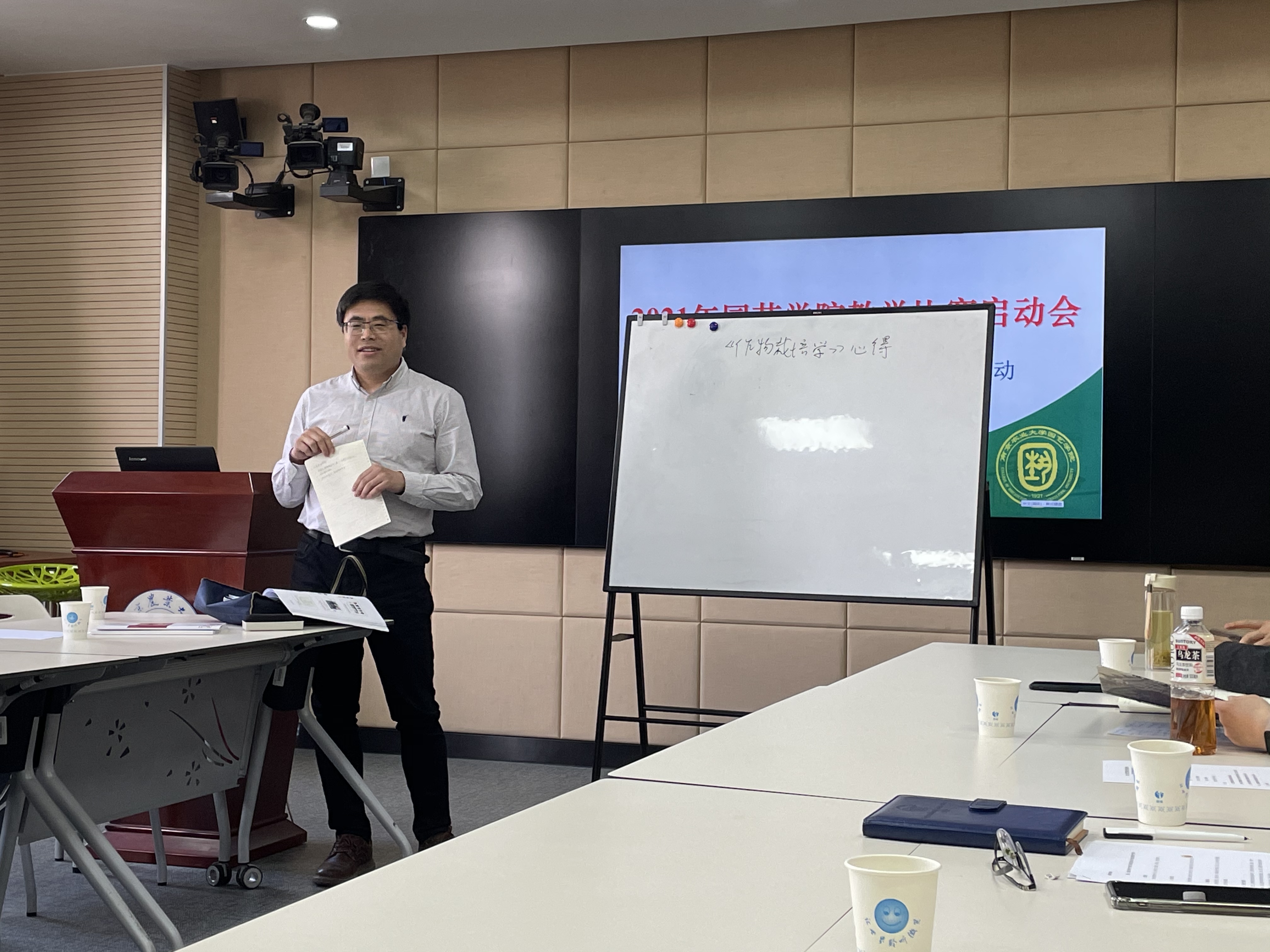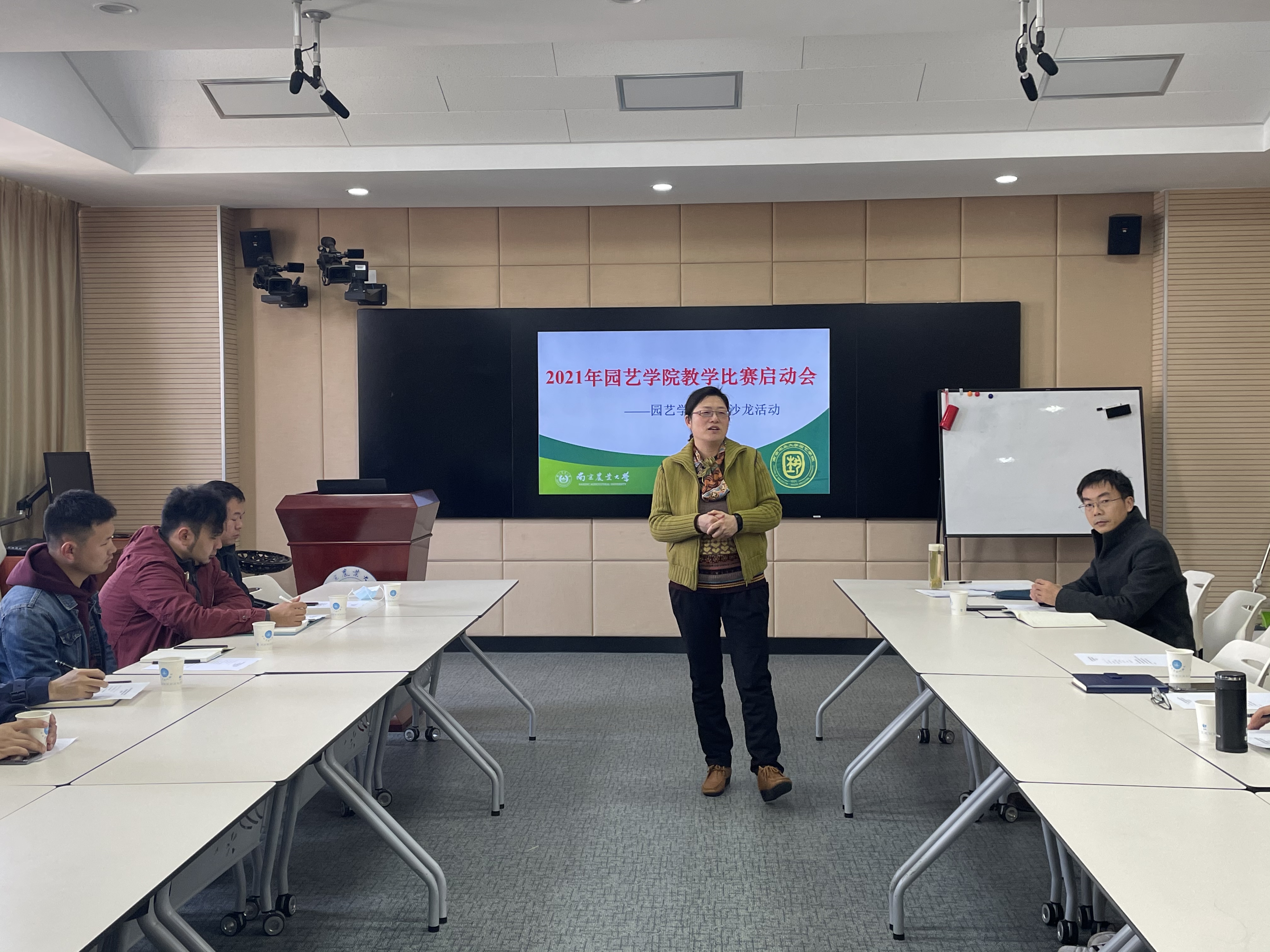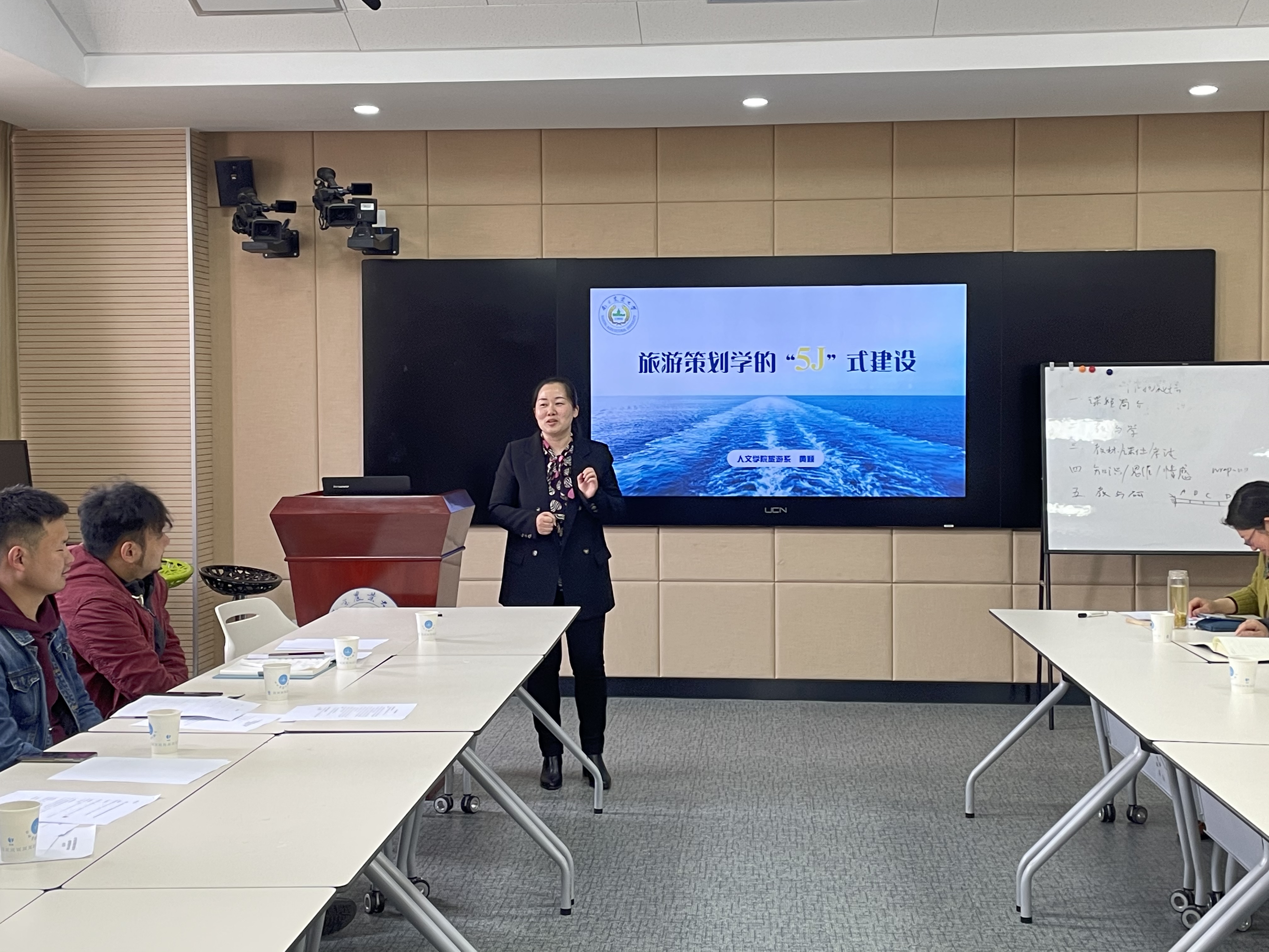 沙龙活动正式开始,丁晓蕾以《青年教师教学成长的几个关注点》为题,主要从教学理念、教学准备和教学实践三个方面启发青年教师在教学过程中应注意的一些要点,并如何将教学理念运用到实际教学中去。刘正辉以自己主讲的《作物栽培学》课程为例,讲述了课程建设和教学设计方面的心得,同时现场分享了该课程的手写教案、课件、学生反馈卡片,引起了青年教师的广泛讨论和关注。黄颖以《旅游策划学的“5J”式建设》为题,介绍了《旅游策划学》从课程设计到学生反馈的整个教学过程,让草榴社区
