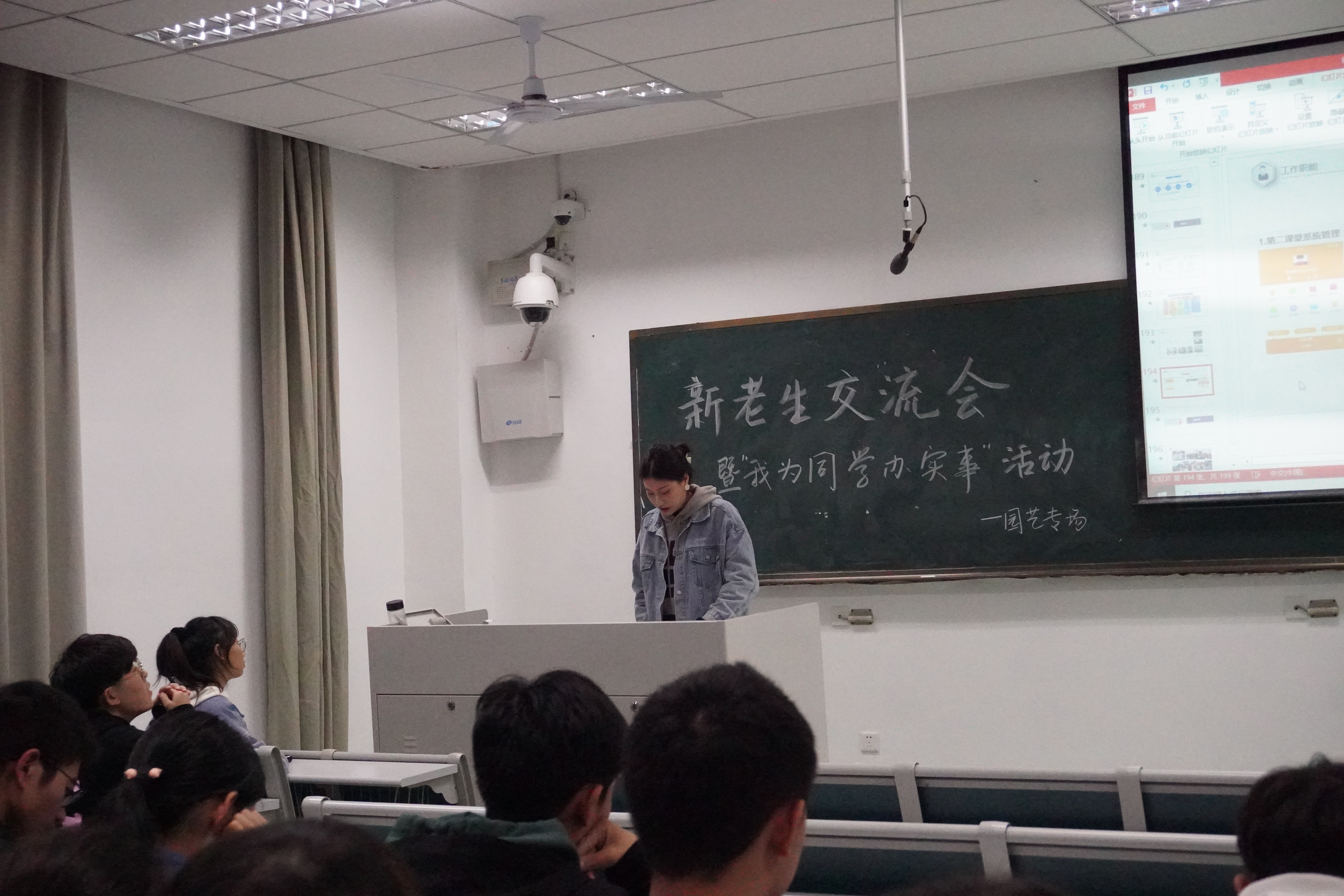 之后赵瑜涵同学和大家分享了自己大学的生活,大学生存指南以及保研的经验和入党收获。首先,赵瑜涵同学为大家展现了自己充实而精彩的大学生活,希望以此激励同学们勤勉致知并有所收获。随后,赵瑜涵结合自身心得分享了大学的几条生存指南,如重视学习、多参加活动、保持身体健康、及时规划总结和提高效率,希望帮助同学们尽快适应大学生活。之后,赵瑜涵同学详细介绍了保研的流程以及园艺专业学生党支部和入党的收获。最后,她以自己大一入学新生讲座上拍的一张“大学遗憾排行榜”做总结:认真走过的路都不会有遗憾,希望大家都拥有一个丰富精彩的大学四年。