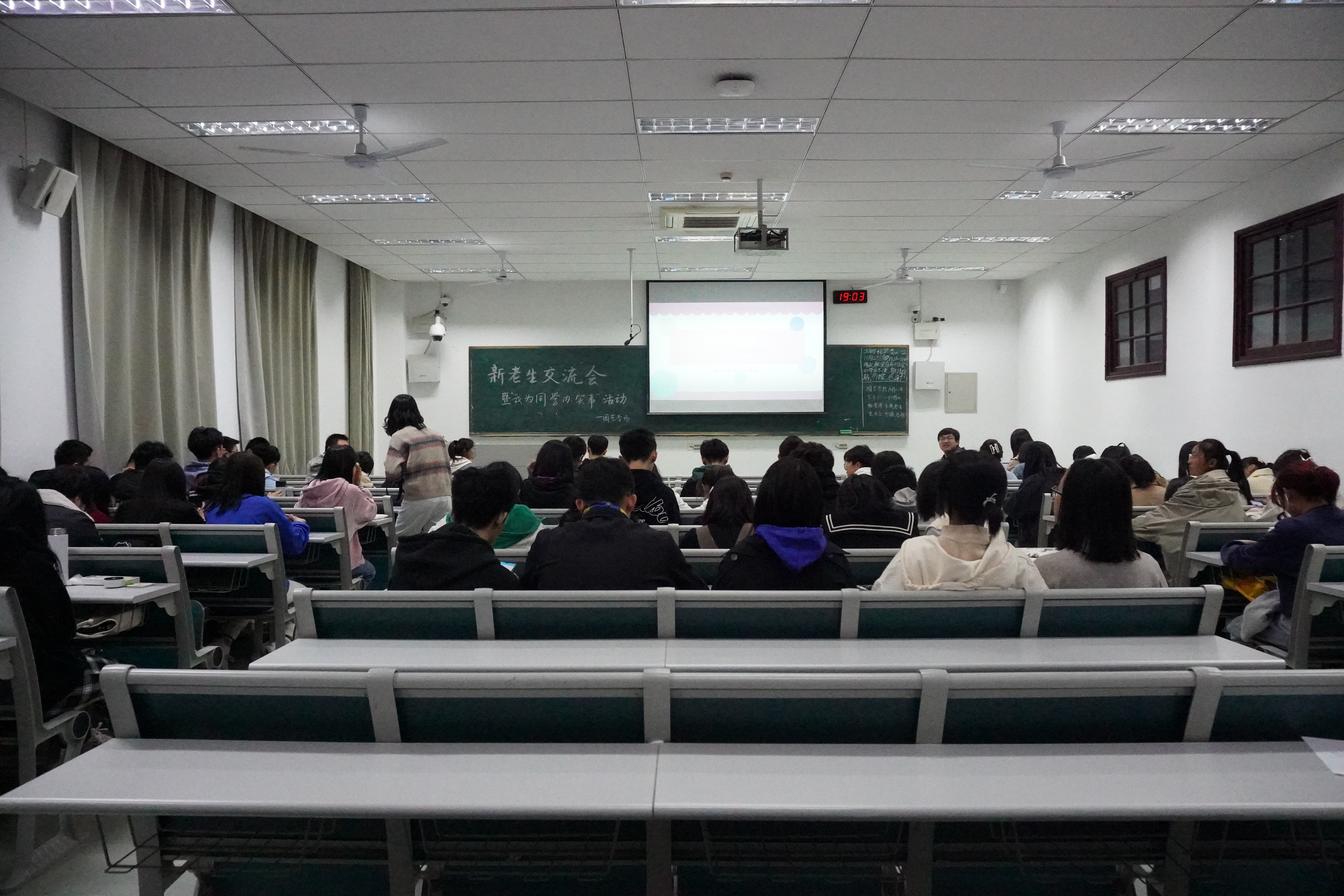 本次交流会由党支部和毕业班的4位同学为2021级新生做专业介绍、学习心得、大学适应、学生工作等方面的交流。