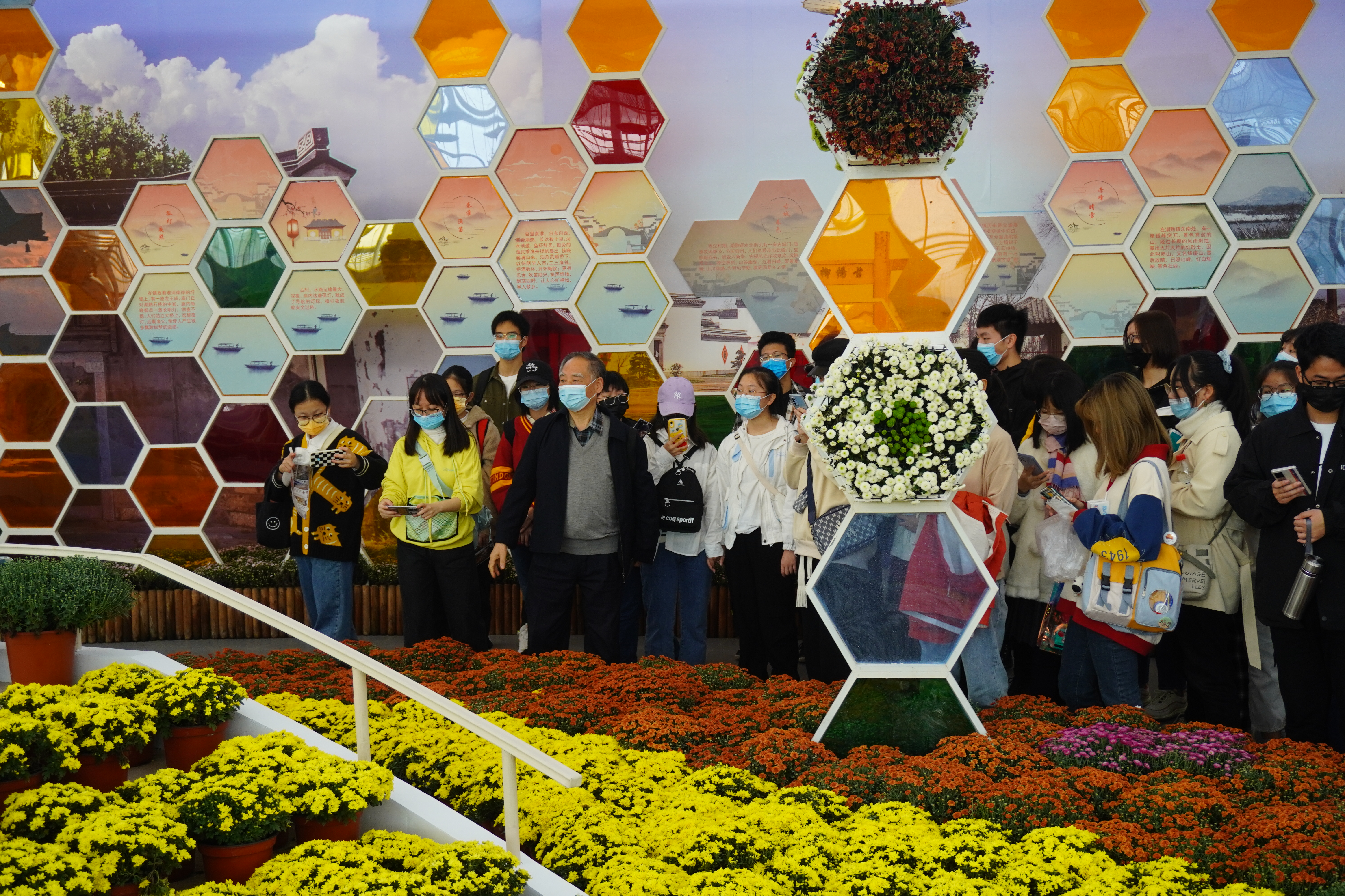 “菊”之美,不止于花,更在于人。在展厅的一角,更是展示了一代代南农人辛勤保存菊花资源、用菊花及其衍生品助力乡村振兴的点滴历程。园艺213班的吴新怡同学更是主动报名成为展厅志愿者的一员,贡献一份自己的力量,“非常开心能用自己的才艺特长为菊展增添一份趣味,在这样的志愿服务中更能了解到专业的所学所用,更加热爱园艺了!”科研人员的辛勤付出、志愿者们的热情讲解……“人情”满满,花意更浓。