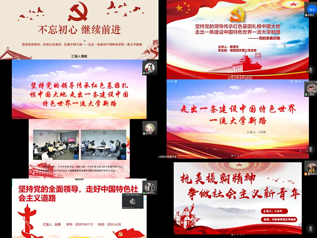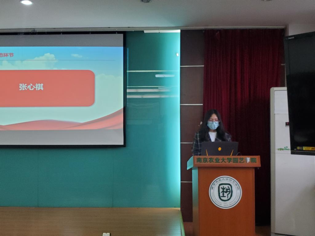 观赏园艺硕士第三党支部于生科楼B4011会议室及腾讯会议室线上线下结合举办深入学习贯彻习近平总书记在中国人民大学考察《坚持党的领导传承红色基因扎根中国大地 走出一条建设中国特色世界一流大学新路》讲话精神暨支部积极分子讲党课活动。支部全体党员及积极分子参加本次会议,会议由支部副书记贾棣文主持。