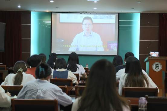 在云授课环节,扬中市女科技工作者联盟会长、江苏美科太阳能科技股份有限公司扬中工厂总经理冯琰结合自身经历,和同学们分享就业故事和职业规划。