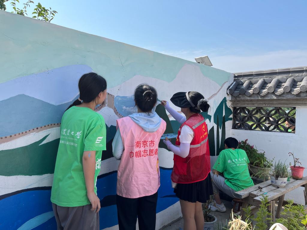 践行志愿精神,共绘美丽庭院。支部党员发挥志愿精神,结合专业所学,与街道志愿者前往葛塘街道长城村开展墙绘活动,以墙为布,画美乡村,一面面墙画,或加入当地特色,或具有特定主题,将乡村文化和现代文明巧妙结合,让一面面白墙“活”了起来,让一个个乡村庭院美了起来。支部党员们在实践中亲眼所见葛塘街道的环境美、生活美和人文美,亲身感受到社会主义新农村的新气象、新面貌和新希望,并以画笔建设美丽庭院,以青春助力乡村振兴,为美丽乡村建设注入艺术气息和青年力量。