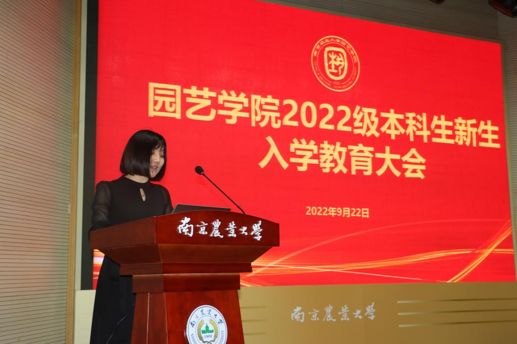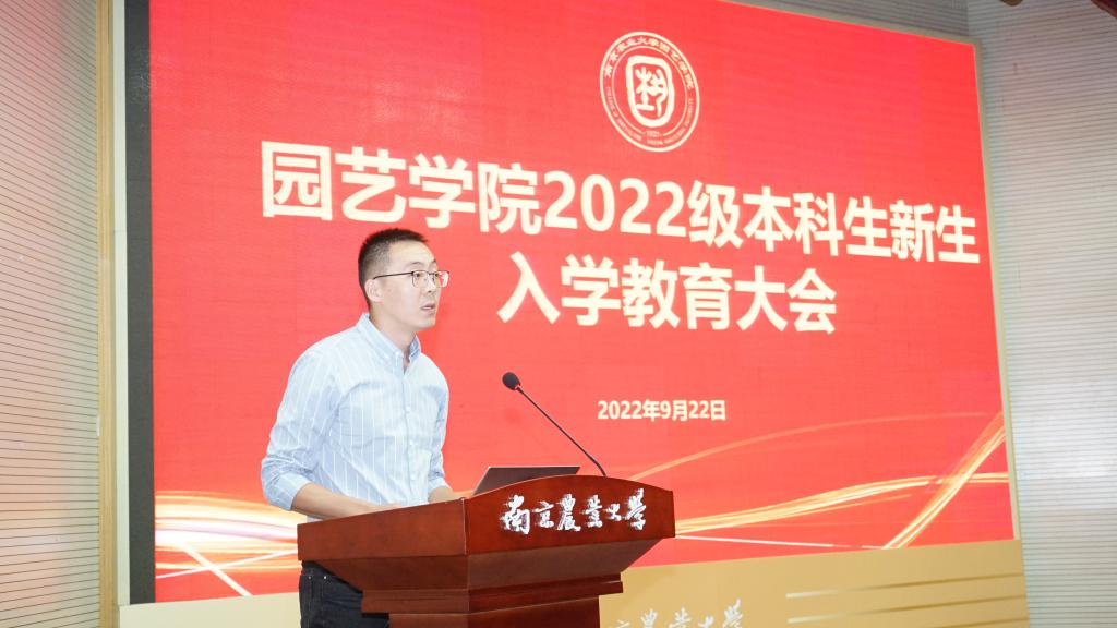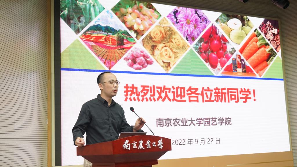 的创业史、砥砺史、贡献史,并用往届优秀学生事迹为例,勉励新生自觉担起园艺责任,赓续农耕精神,青春奉献祖国,并对新生提出三点殷切期望:树立远大的理想抱负、追求卓越;明确发展目标、脚踏实地奋斗;勇于克服困难,尽早适应大学生活,启航新征程。