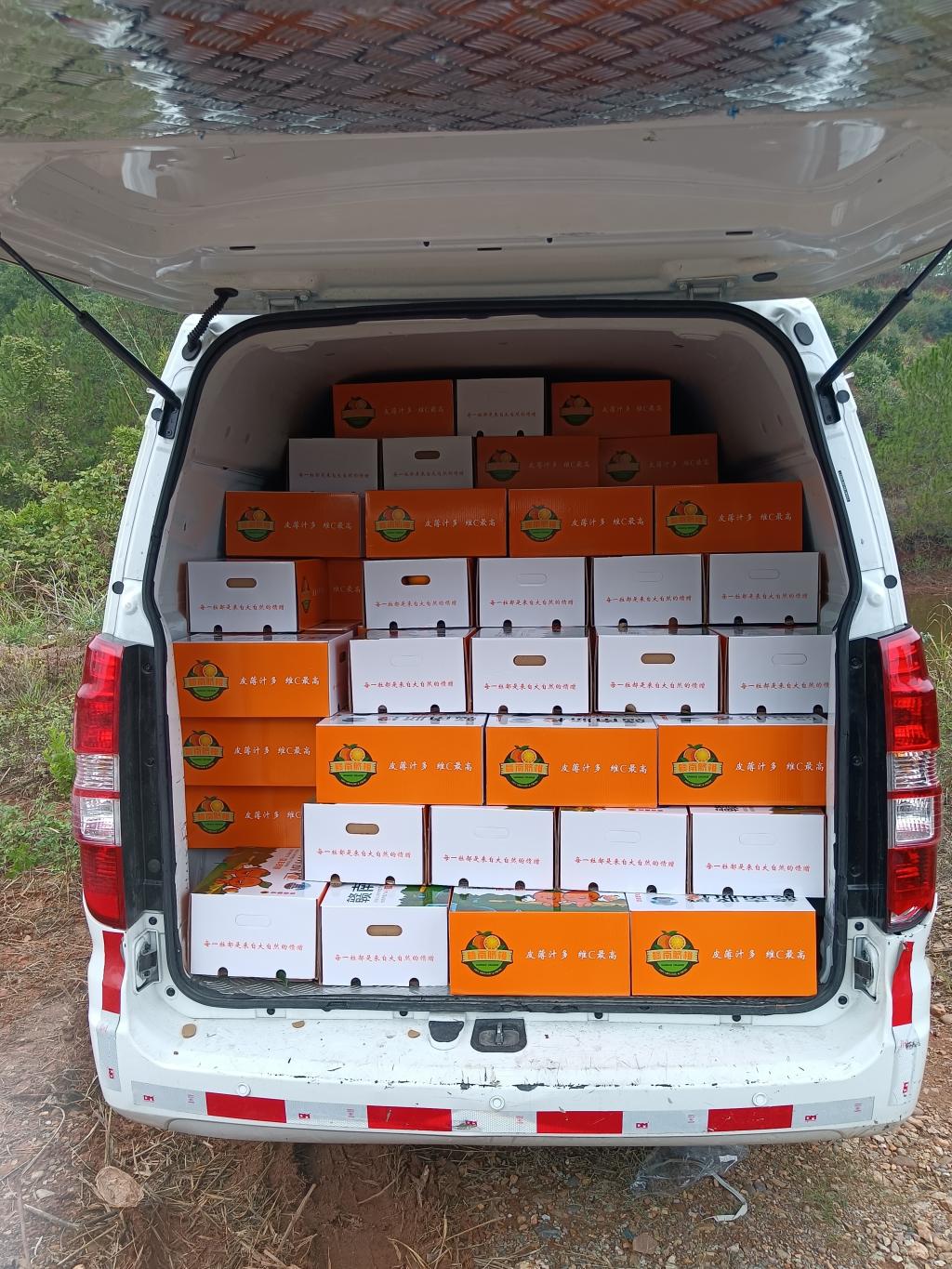 11月18日,一箱箱橙子从赣南信丰果园里新鲜采摘,就地打包后运输到学校里,高质量保障“橙中之王”的新鲜度。正如果箱上印刷的话——“每一粒都是来自大自然的馈赠”一样,黄灿灿的橙子果肉饱满、甘甜多汁,澄香沁人心脾。