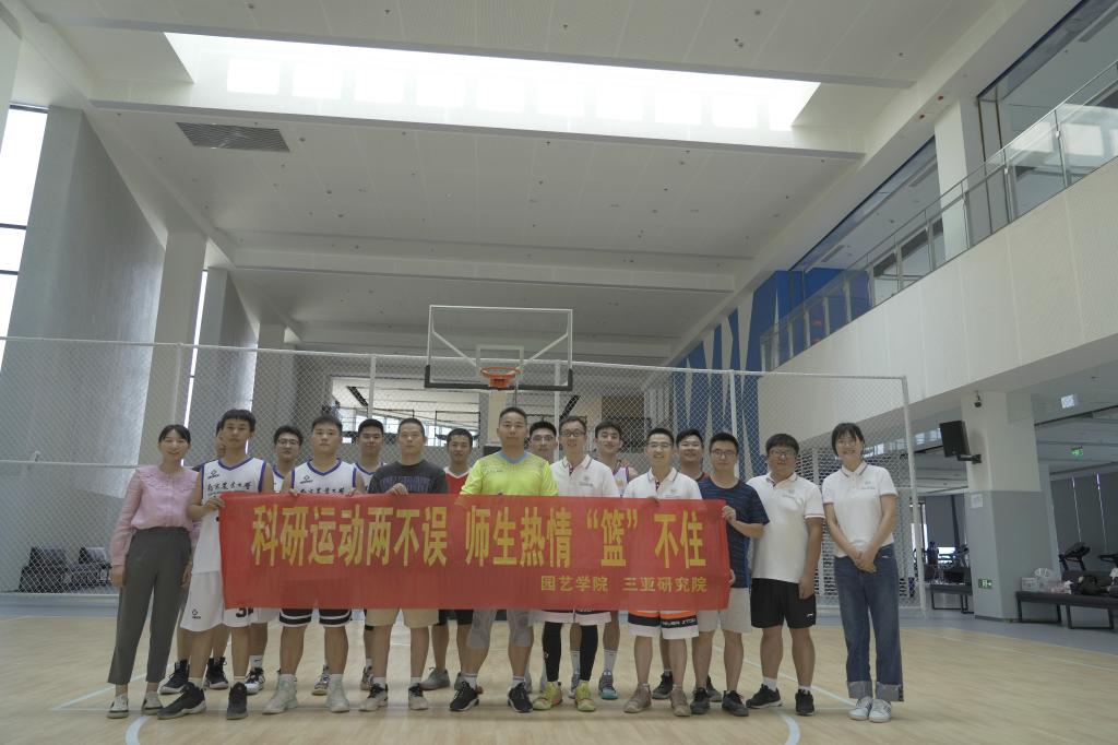 和三亚研究院的教师们与海南专项研究生在创新研学谷体育馆举行了师生篮球联谊赛。双方在赛场上你追我赶、互不相让、激烈交锋,比分螺旋交替上升,充分展现了南农师生的昂扬斗志和拼搏精神。