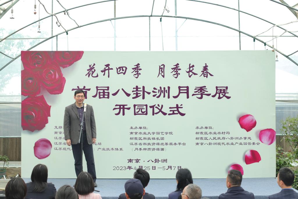 月季团队和基地的成果展,也是栖霞区科技镇长团和栖霞区八卦洲街道乡村振兴工作的阶段性呈现。并希望月季团队能以此次展览为契机,“以花为媒”,汇聚各方智力、凝聚多方力量,推动科技创新,不断产出顶天立地的成果,服务农业强国与乡村振兴;继而以此次展览为新起点,躬耕不辍,着力推进农业与旅游、教育、文化与产业的深度融合,打造宜居宜业美丽乡村,打造八卦洲乡村旅游新地标。并预祝本次展览取得圆满成功。