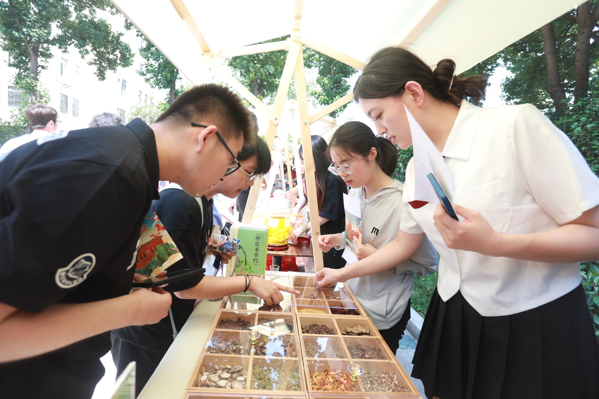 校医院14个科室的近30位医护专家为学校师生进行了大型专家义诊,累计提供健康服务300多人次,发放文创中药香囊千余个。在“神农本草”中医药文化展示区,人头攒动,气氛火热, 热闹非凡,中药香囊、药用植物、芳香中药、中药传统制药工具、中药文创作品、中药特色产品、中药标本、中药学科特色及中医药文化展等一系列丰富多彩、耳目一新的互动展区吸引了众多师生参与观赏学习和互动交流。