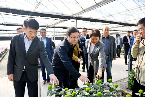 湖熟菊花研发展示基地考察。滁州市委副书记金力,市政府秘书长王燕永,南谯区委副书记、区长王莹,市农业农村局局长程军才等参加考察。我校党委书记王春春,副校长闫祥林接待了考察团一行。