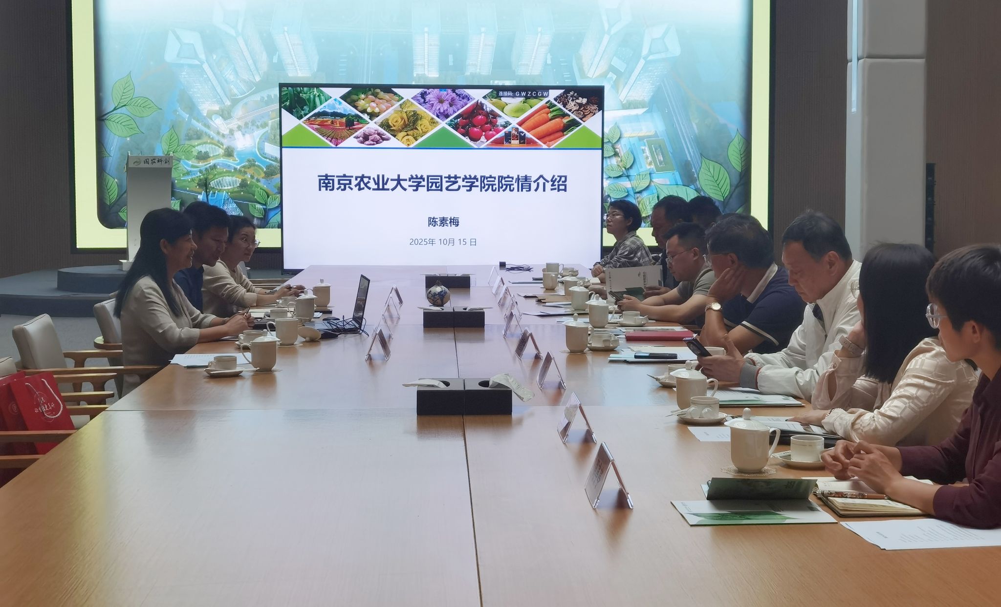 院长陈素梅、党委副书记束浩渊一行前往南京国家现代化农业产业科技创新中心(以下简称“农创中心”)开展调研交流。农创中心党工委书记周蓉蓉,党工委委员、发展规划部部长周莉,首席专家姜雪忠,发展规划部副部长肖超,新创蔬菜分子育种研究院有限公司董事长袁希汉,江苏加德华中药材智能种植有限公司董事长黄昕,南京艾莫生物科技有限公司总经理朱堃,江苏怀清农业股份有限公司农技部经理张娇娇等共同参加座谈。