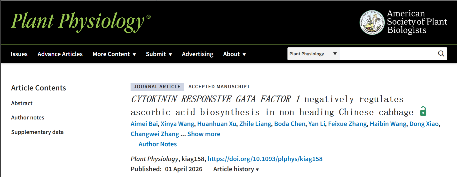 草榴社区 侯喜林、李英团队揭示GATA转录因子BcCGA1负调控不结球白菜抗坏血酸合成的分子机制